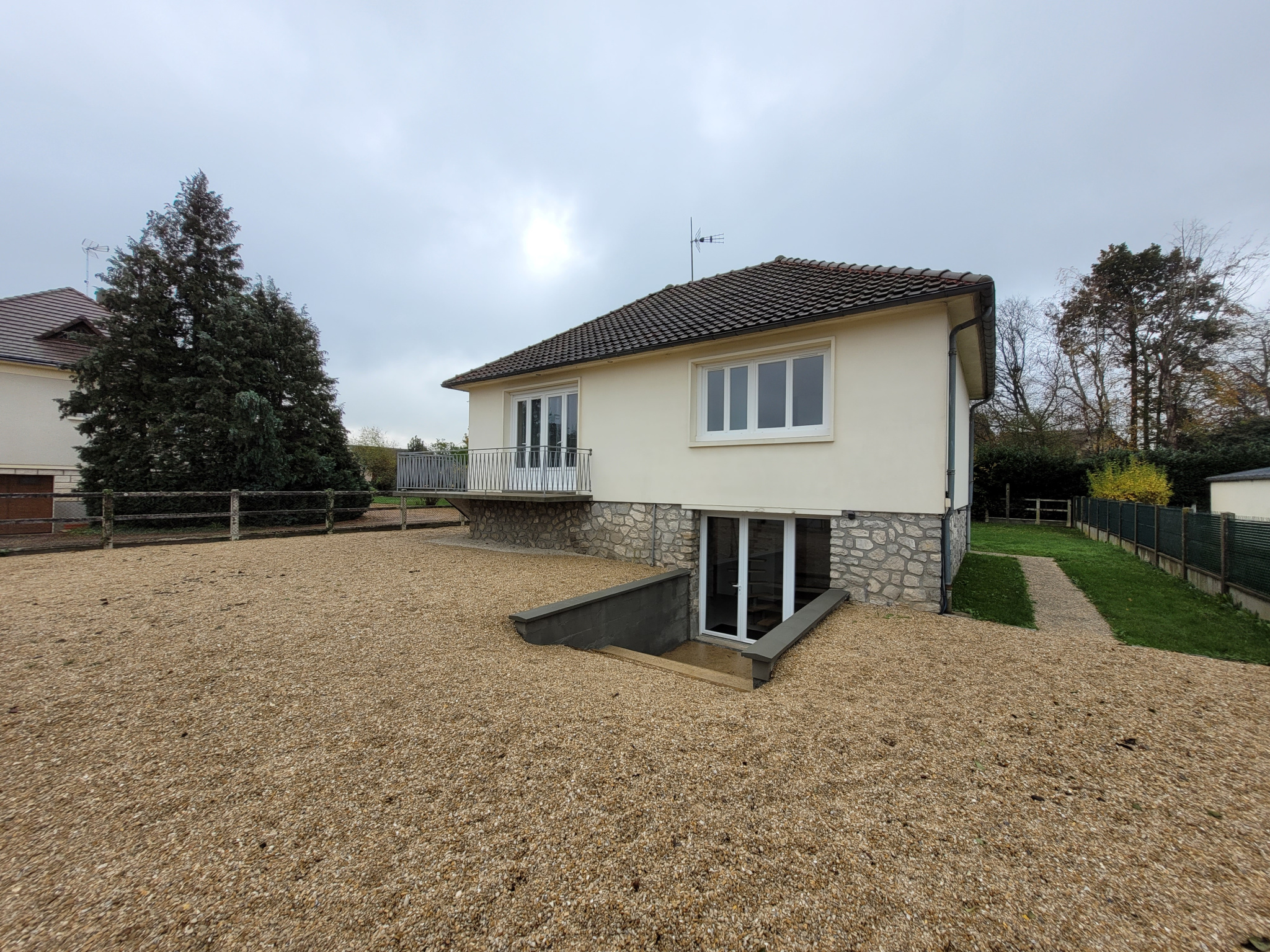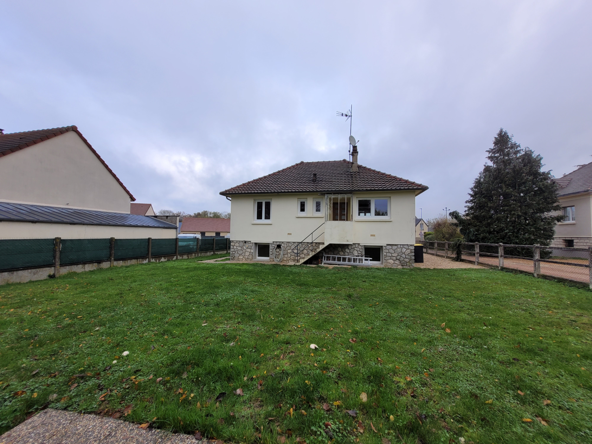 Nous vous proposons ce pavillon composé au rez-de-chaussée surélevé : une entrée sur séjour avec cuisine ouverte aménagée, 2 chambres, salle de bains, wc. En accès jardin : Pièce de vie, wc, 2 chambres. Jardin clos de 615m2 environ. Commerces et écoles à pied. Tout à l'égout.