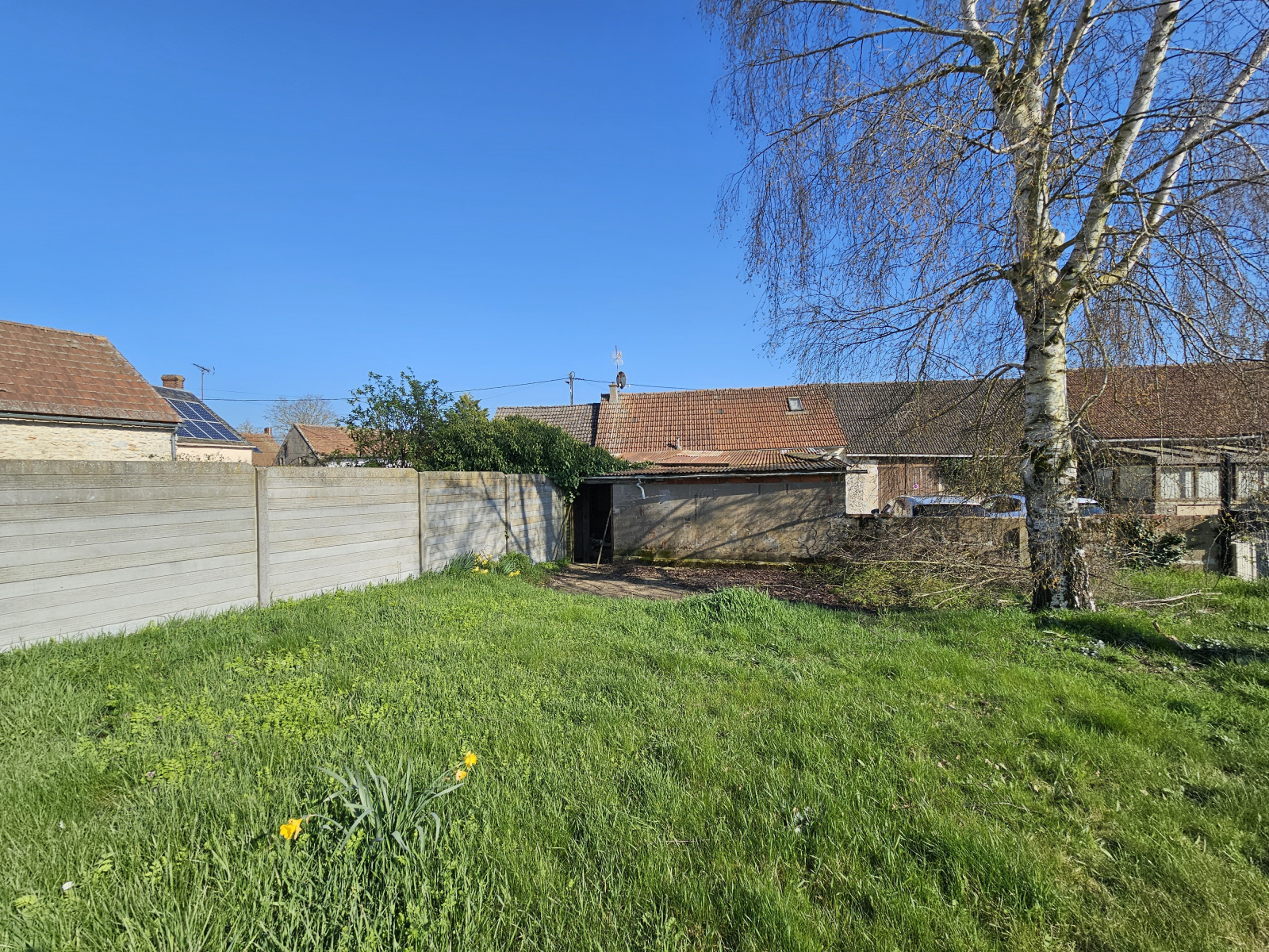 Maison ancienne composée d'une entrée sur pièce de vie avec poêle à granules, cuisine ouverte, chambre, salle d'eau avec wc. A l'étage : palier, une seconde chambre, salle de bains, wc. Garage, jardin de 360m² environ.