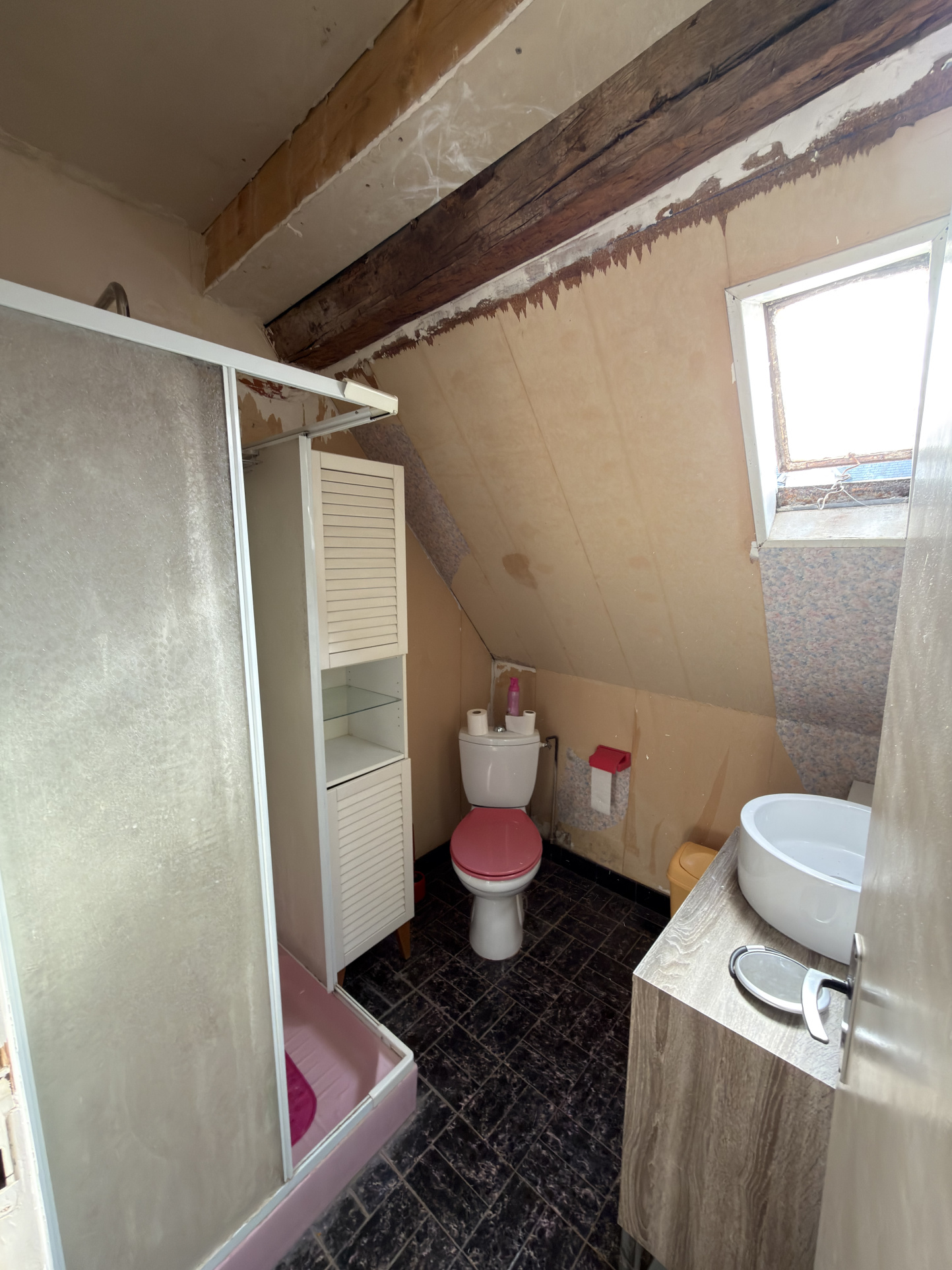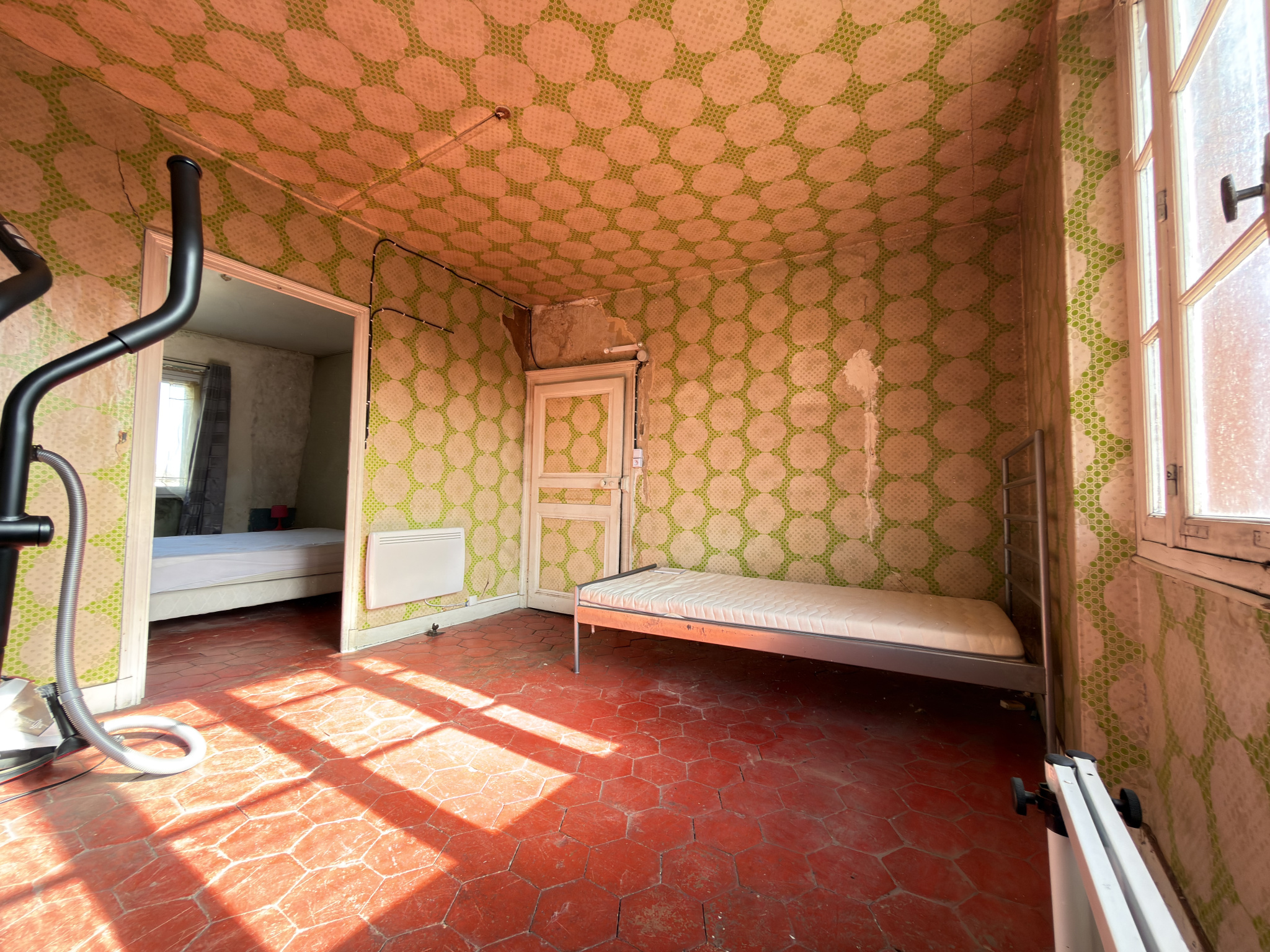 - Au premier étage, vous disposerez de trois chambres dont deux en enfilade, une salle d'eau avec wc et un grenier (au dessus du garage).